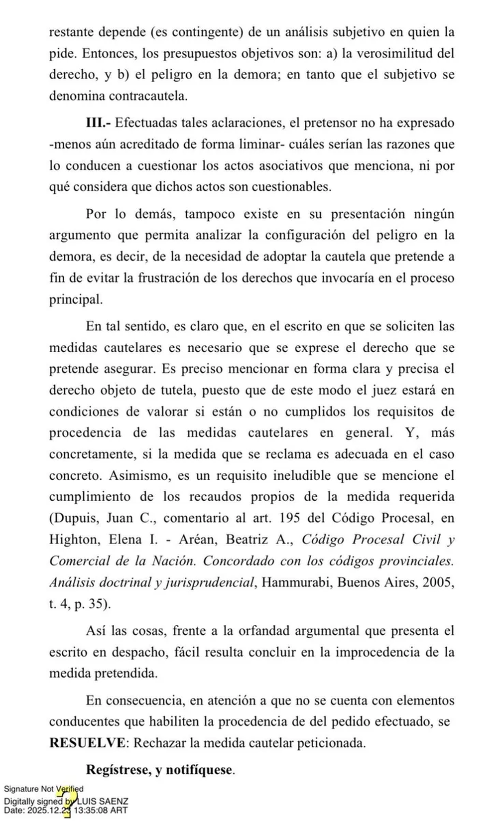 Un nuevo capítulo en la novela dramática de San Lorenzo se escribió este martes. Finalmente, el Juzgado Nº 51 rechazó la cautelar de Marcelo Moretti para anular la acefalía en el club. Así, rechazó su pedido de nulidad de la reunión de la Comisión Directiva de San Lorenzo de la semana pasada en la que se decretó la acefalía. Pese a esta negativa, el expresidente ahora apelará el fallo ante la Cámara Civil.