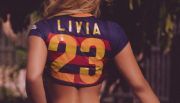 La modelo Livia Gullo se ha mostrado varias veces como una de las más enfervorizadas fanáticas del Barcelona, pero en esta oportunidad, como dicen los españoles, va a por más.
