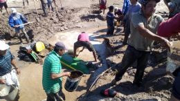 Pese a los daños que sufrió en su vehículo, el comerciante Raúl Pereira agradeció el gesto de los vecinos y las personas del lugar que se solidarizaron en ese momento para que el camión no sea arrastrado por la creciente. En tal sentido, donó toda la mercadería que lograron rescatar a estas personas.