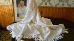 Abrigado con un sobretodo blanco dado el intenso frío que lo aguardaba, el Papa le habló a la multitud que lo esperaba desde temprano llevando una "chusca" que le colgó en su cuello el presidente Morales.
