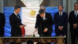 En tanto, Pérez estuvo acompañado en el Salón de los Escudos por los ministros de Interior, Rogelio Frigerio, y de Justicia, Germán Garavano.